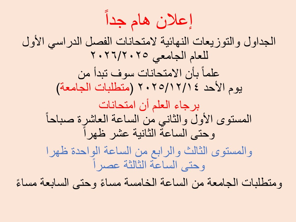 تسجيل المقررات والجداول الدراسية للعام الجامعي: 2025-2026 الفصل الدراسي الأول